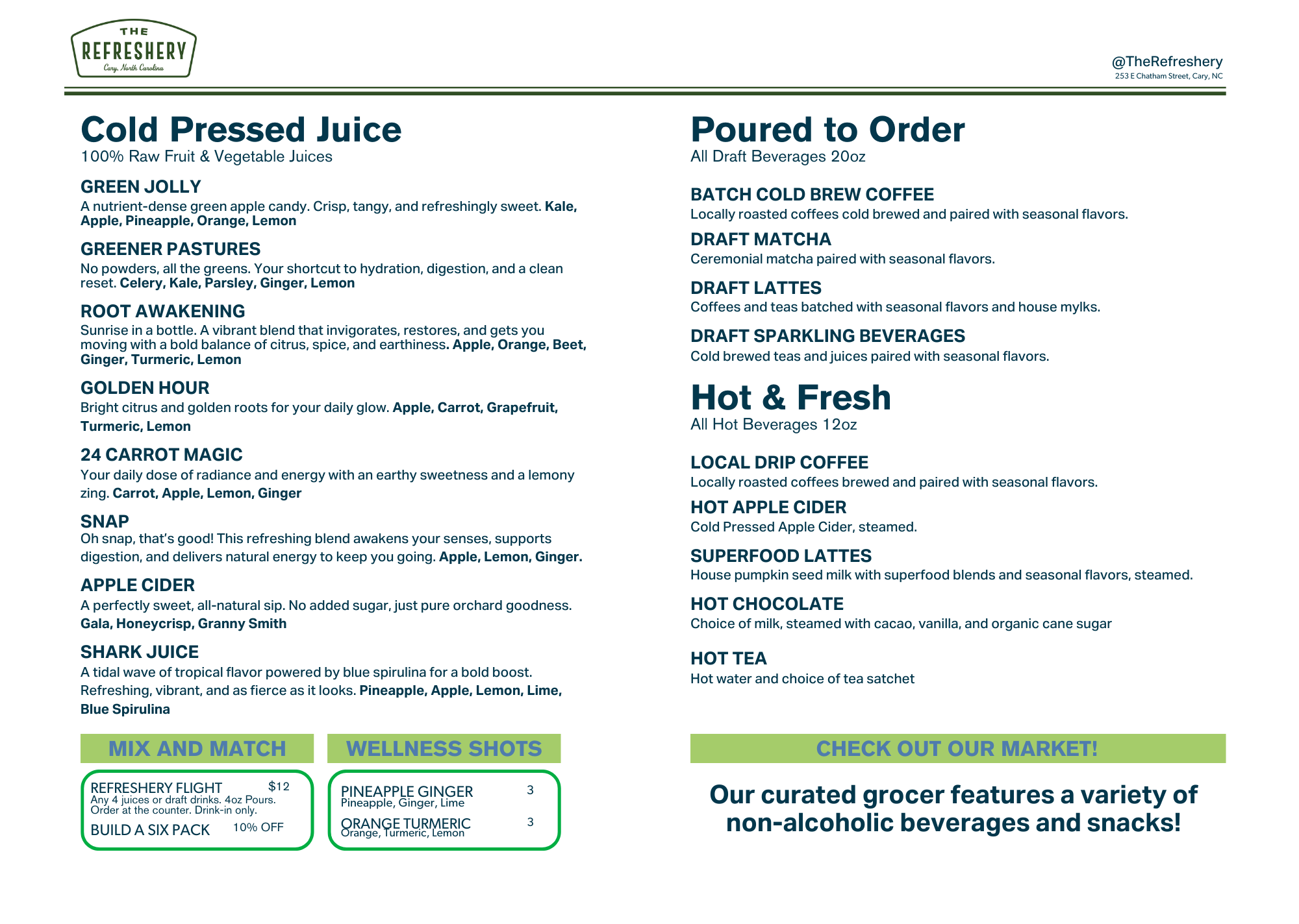 Our juices are made fresh daily—never heat-pasteurized, never compromised.